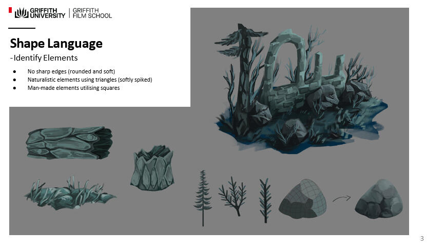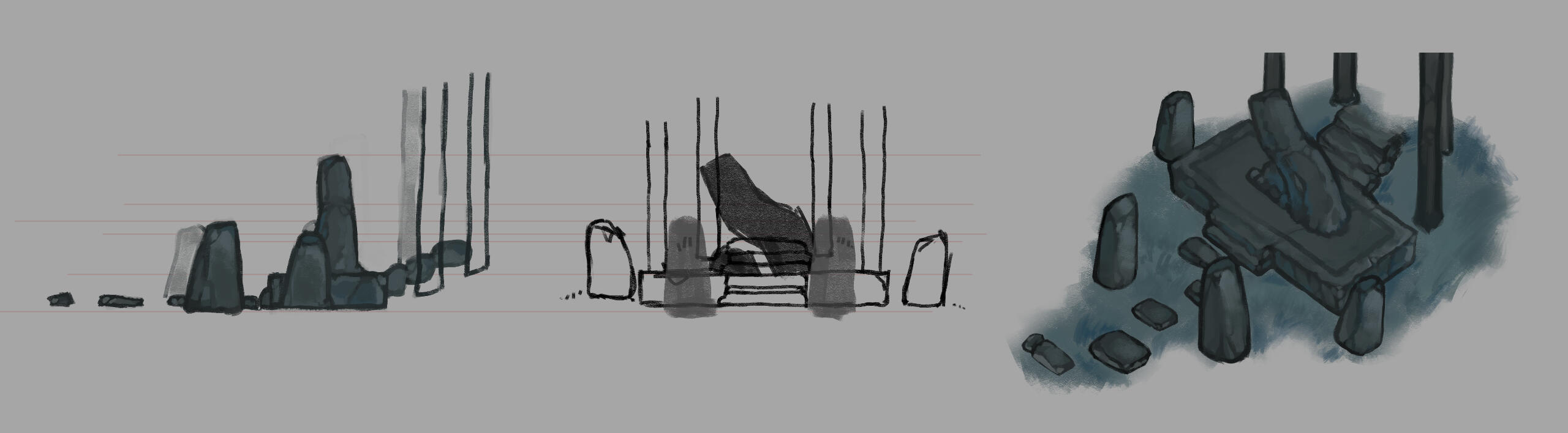 3D modeller Trelyse Allan was focussed on the main ruins model, a key asset that was required for the playtest to have a secondary stage. Josie Hunt, focussed on texturing the lantern and the rocks, the trees and a smaller ruin.
